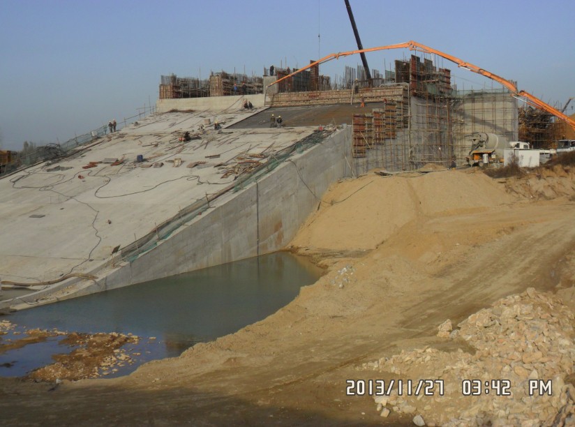 白河倒虹吸出口段施工侧影