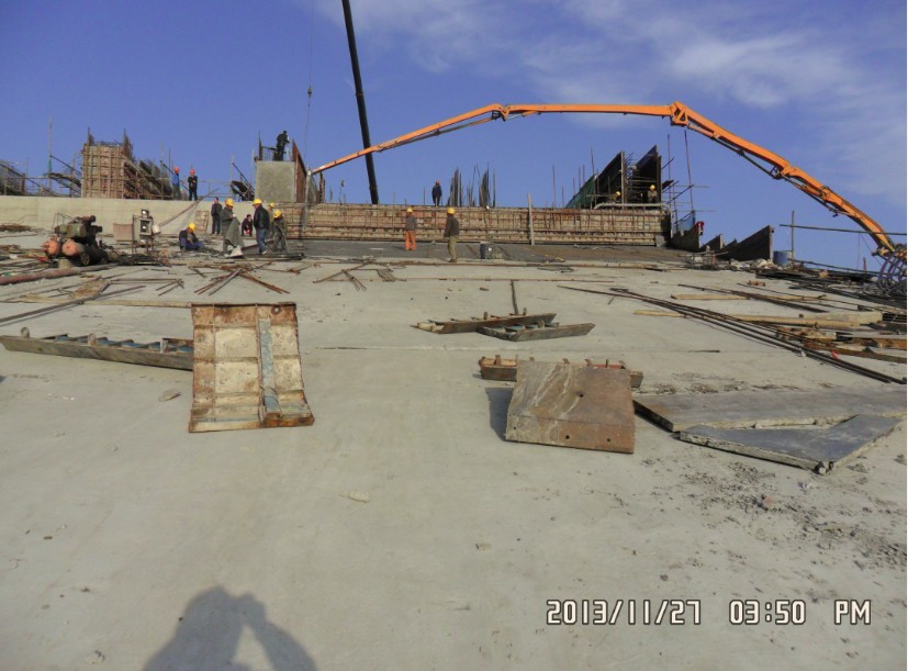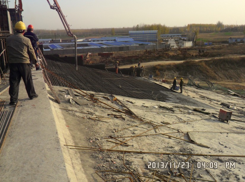 2013年11月27日,我公司承建的南水北调中线白河倒虹吸混凝土工程管身段最后一仓顶板混凝土开仓浇筑,